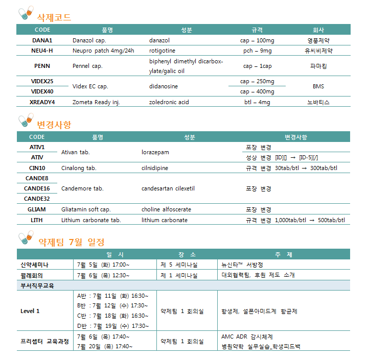 신약 정보 | 서울대학교병원운영 서울특별시보라매병원 약제부